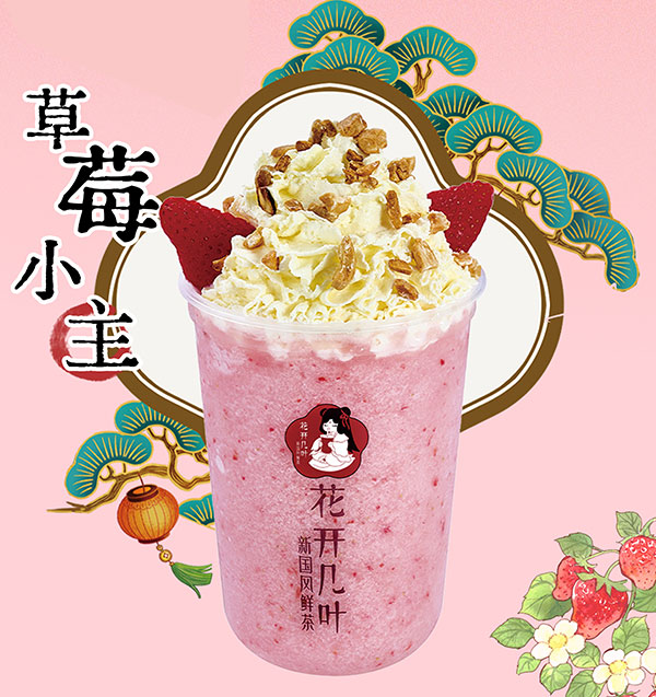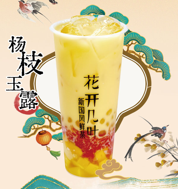 花开几叶专门做中国风鲜茶,它的特色是用各种鲜奶茶、新鲜水果和柠檬茶来制作出香甜可口的奶茶饮品,不仅美味,还有自然·健康·营养的特点。